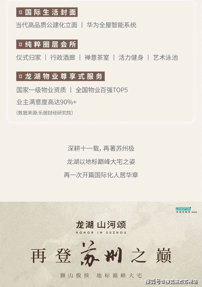 苏州龙湖山河颂售楼处电话☎:400-8828-814(售楼处预约看房热线)秉承“善待你一生”理念,连续15年满意度都在90%以上,行业第一个颁布“物业白皮书”的企业,有4500条物业服务标准,以“满意+惊喜”的服务获得广大业主认可。