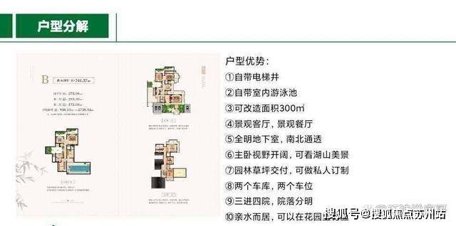 总占地面积150亩,总建筑面积3.3万方,至此51席纯独栋别墅。项目整体是苏州园林风格,苏州园林以私家园林为主,本案园内是以网师园为蓝本设计的,做到“一园一景”的景观效果,这样您买到的房子是世界上独一无二的,产品全部都是采用地上两层,地下一层的布局,地下一层是全明的,层高超过3.3米。项目容积率只有0.269,绿化率高达50%。