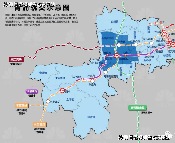 此外,1站可达青浦新城站,未来在此可同站换乘上海示范区线 (在建)、嘉青松金线 (规划)、轨交17号线。 (信息来源:《青浦区综合交通“十四五”规划》)