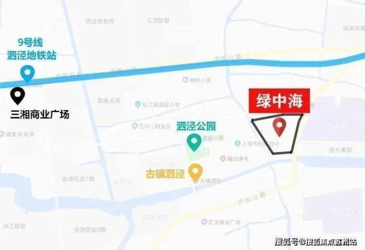 绿中海与目前泗泾核心9号线泗泾站直线距离约1.8公里。