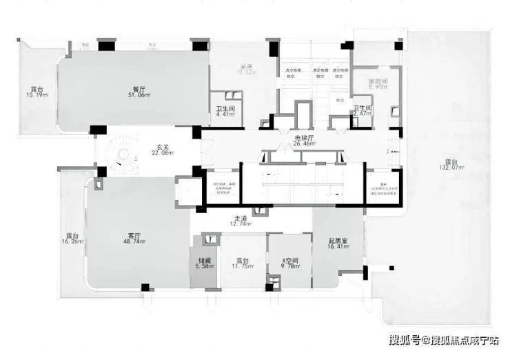 网传该户型过程稿👇两梯一户,有专属的家政通道,上下两层都是你的,首层还有超百平露台,朝向滨江方向的餐客厅,江景拉满了!