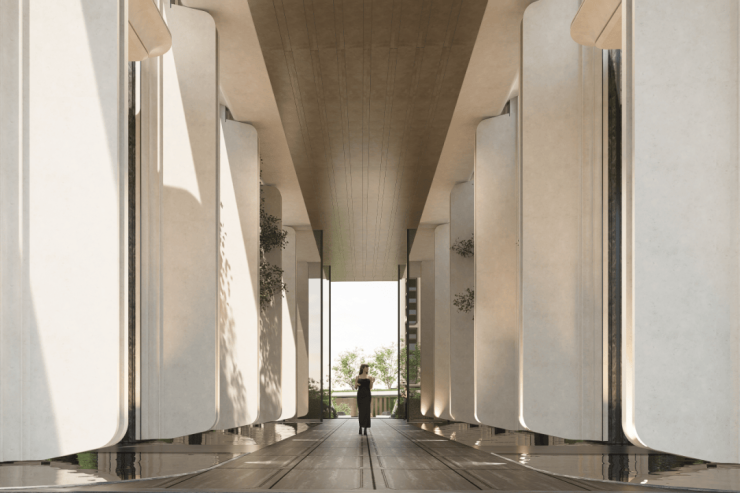 澐启滨江选择把这一切托付给“水”,也托付给一个以下沉水院为核心衍生的花园体系。它不是一个景观节点,而是一种居住哲学的具象化——在城市心脏处,以静水为引,以层层递进的自然密度,让生活回到最松弛、最深处的那一面。
