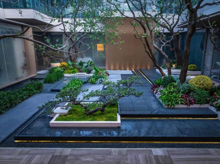 整个会所巧妙利用建筑高差营造立体多维的景观层次,打破沉闷压抑感,使下沉式会所与庭院景观自然衔接,实现社交空间与生态场景的无界融合。