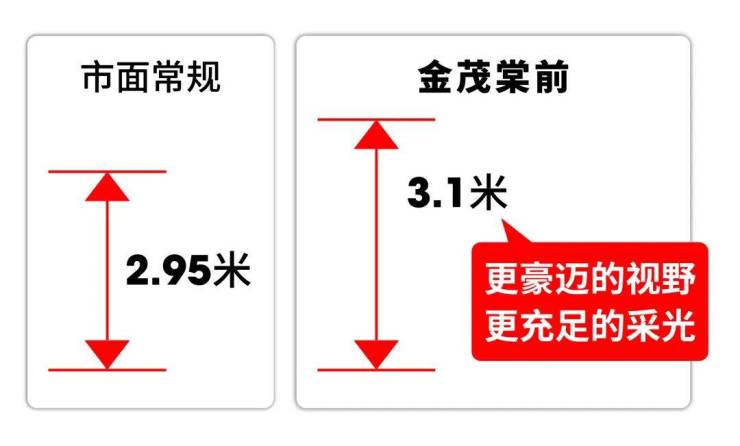 项目 标准层都做到约3.1米的层高 ,远超“好房子”要求的基准线,比普通住宅的层高更是多了约20厘米左右。