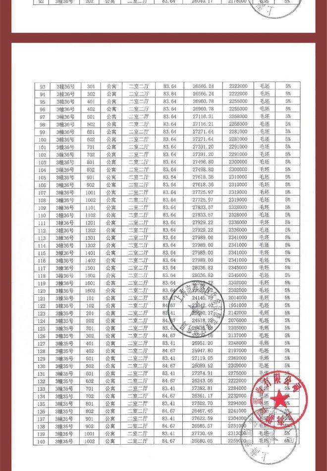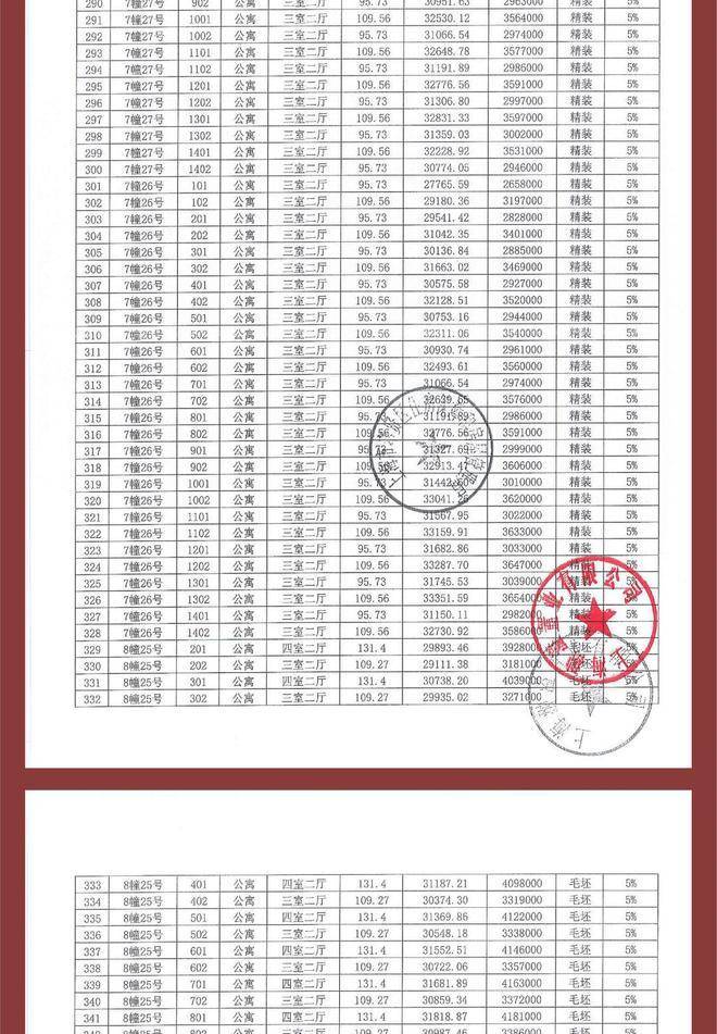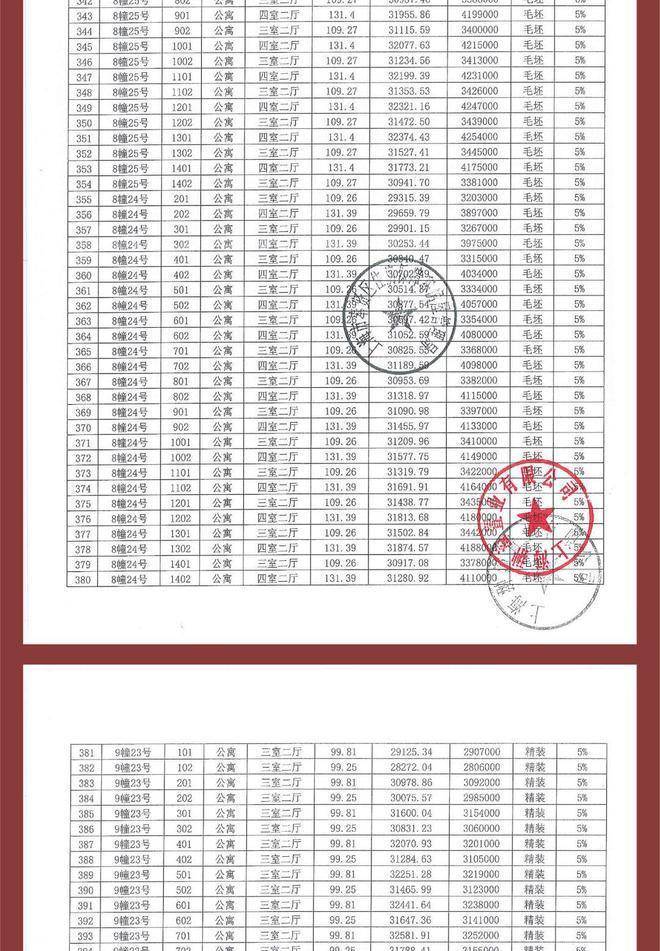 项目一房一价表