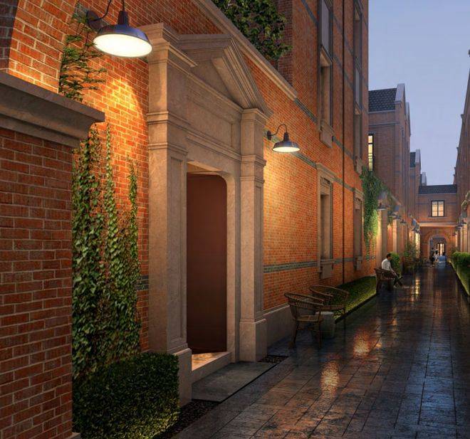 项目由GOA大象设计创始人陆皓先生操刀,汲取外滩西式古典建筑风格,以红砖为主材,复刻老石库门的浪漫风貌,力求打造为一处“新时代里弄住宅”。