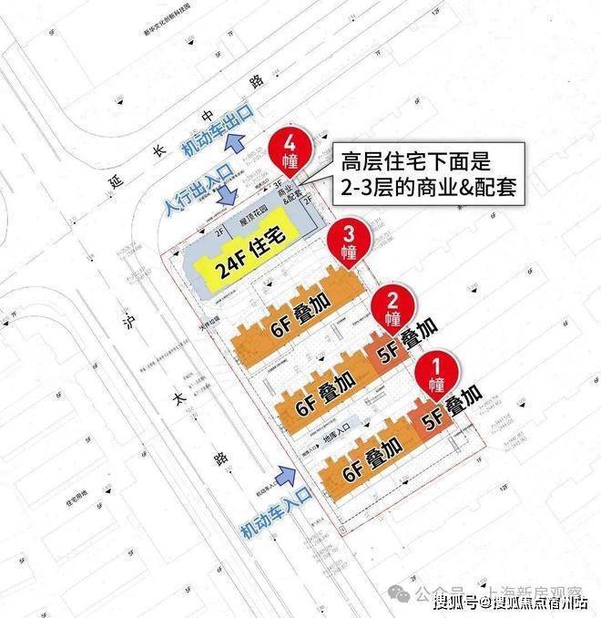 整体土地利用率较高,但是缺少大块的中心绿地.机动车出口、入口和人行出入口完全分开,算是完全的人车分流.地面没有配电房和垃圾房,有可能在地下设置.大