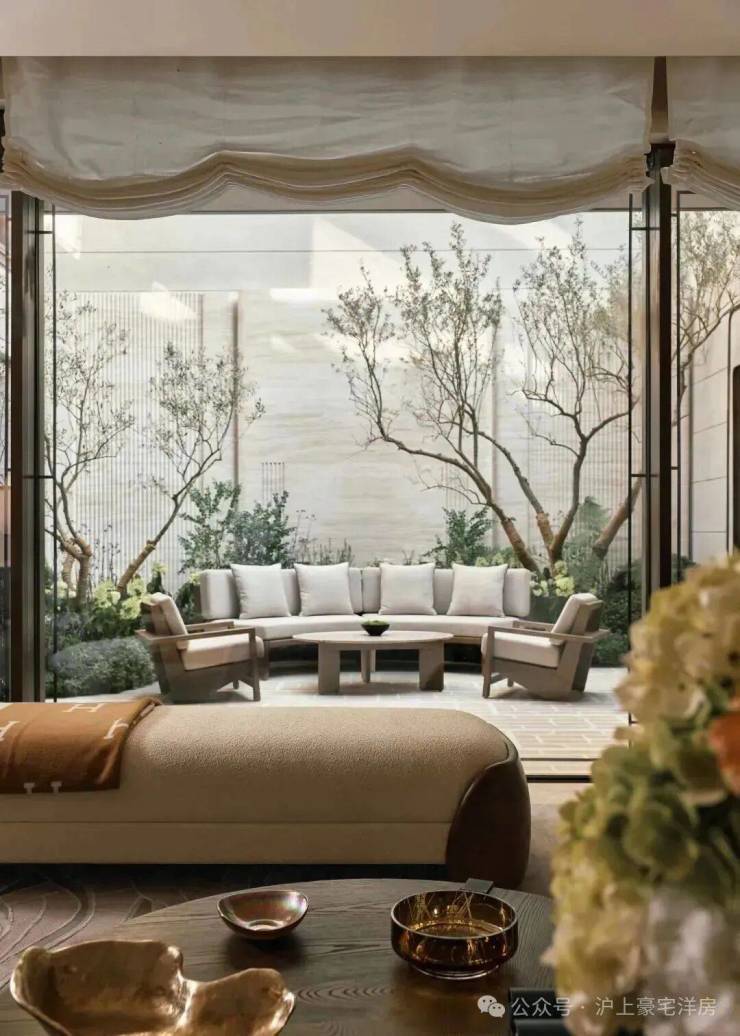 室内陈设遵循少即是多的东方禅意,手作陶器与当代雕塑在灰调中形成材质张力,让艺术装置成为空间的呼吸器官。