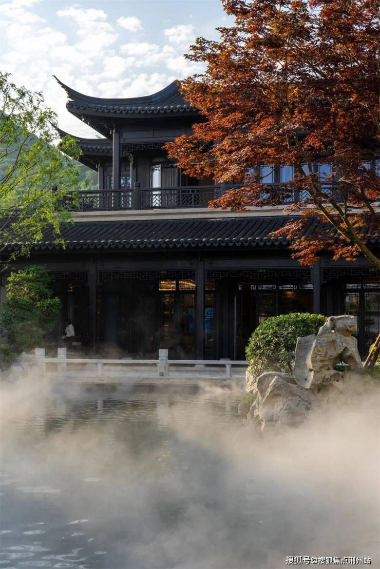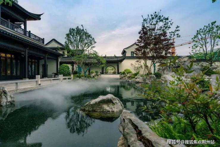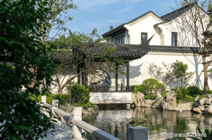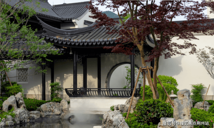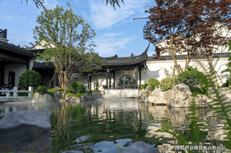江南园林甲天下,苏州园林甲江南,比如像我们现在看到的园林布局,就是经典的苏州园林景观,讲究引水入园.造景围绕着这片水景展开,空间上比较有层次感.近景是流水、堆石,中景是连廊、假山,远景是中式合院的院墙、屋檐.