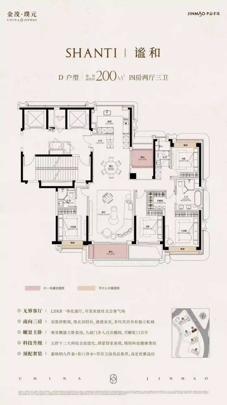 三期【璞瑄200】作为内环内珍稀的200㎡五房科技大宅,将东方美学从观赏彻底融入日常。浓郁的东方气韵与自在从容的生活感在此浑然一体!