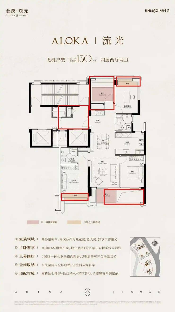 南向三房|双套房三卧室朝南,双联阳台,通透采光,多代共居各有独立私域