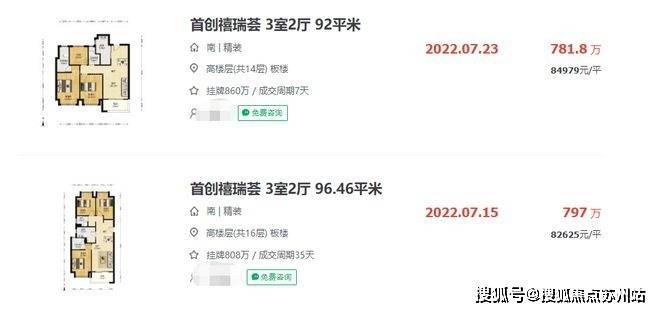 首创禧瑞荟一套82625元/㎡、一套84979元/㎡: