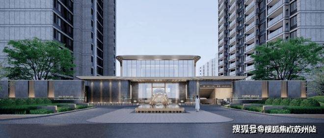 一面即为主入口景观面,作为花语天著归家第一站,主入口以高级灰和香槟金为底色,既体现主入口恢弘气势,又营造典雅的归家氛围。入口以两侧迎客松树阵、涌泉水景、景观雕塑,彰显尊崇序列感和归家仪式感。