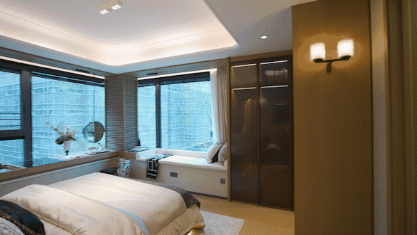 主卧配备约270°飘窗,视觉延展感极强,整墙衣柜收纳无忧,独立卫生间保障私密,构筑男女主人的舒享套房。