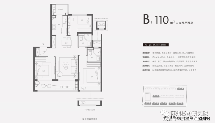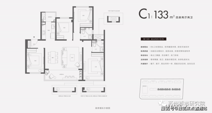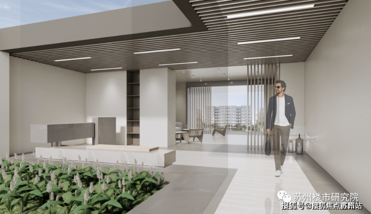 ●规制美学-向阳生长:适配苏州气候,建筑设计采用东偏南小角度排布,以科学的展开面迎接和风与阳光。疏阔楼距,风景自然渗透。