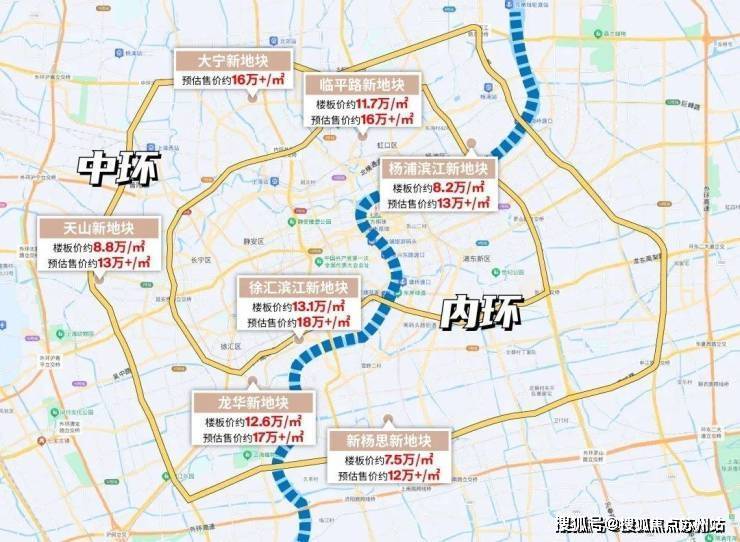 当然,还有核心城区:约12.6-13万楼板价的徐汇滨江、溢价率约38.2%的临平路、溢价率约40%+装修上限的新杨思...