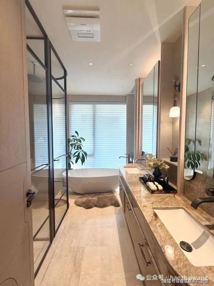 卫浴:汉斯格雅境雨花洒+杜拉维特智能座厕+双台盆设计