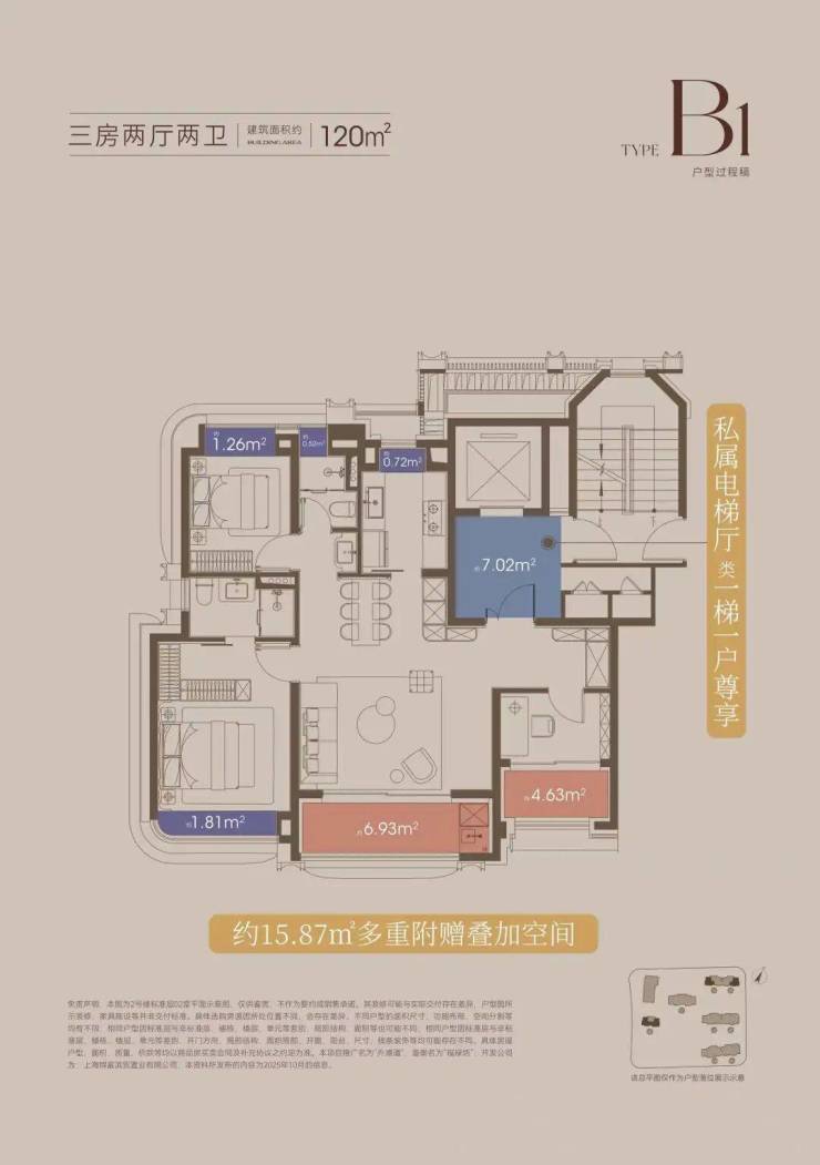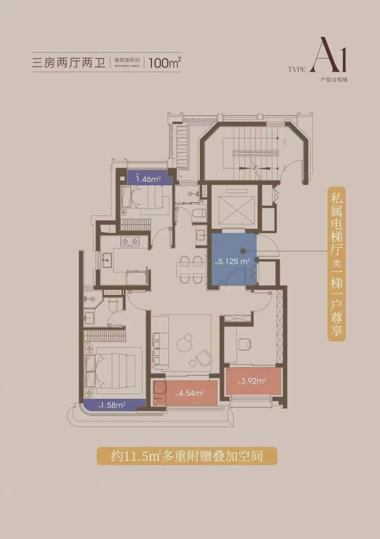 这意味着百平米的业主也能享受一整个独立的电梯厅,这是私密性的保障,更是生活的拓展。