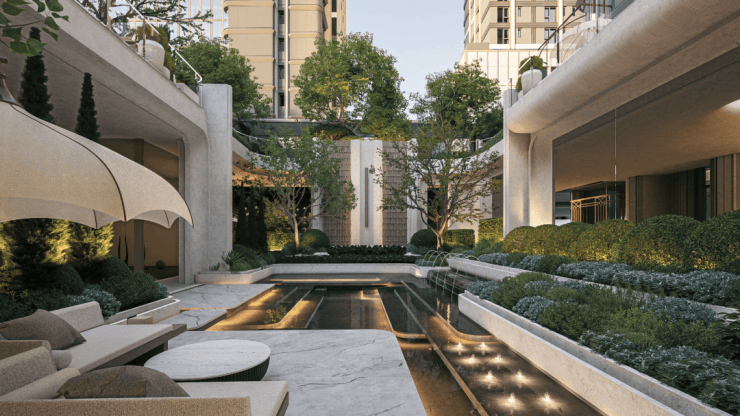 绿意与水系交织其中,涵盖恒温泳池、专业健身空间、瑜伽室乃至私宴厅。