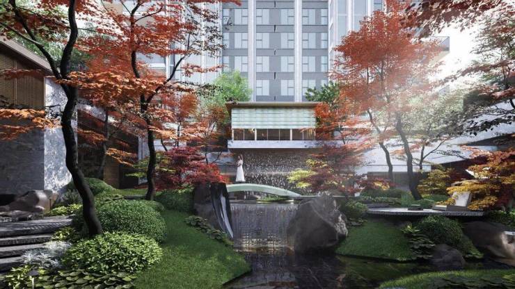 更值得期待的是,小区大门约88米,以苏州首座大尺度流光宝顶与铂金长屏,营造酒店式落客体验。进入之后,就是约500㎡归家门庭,双瀑环抱,层层递进,尊崇感十足。