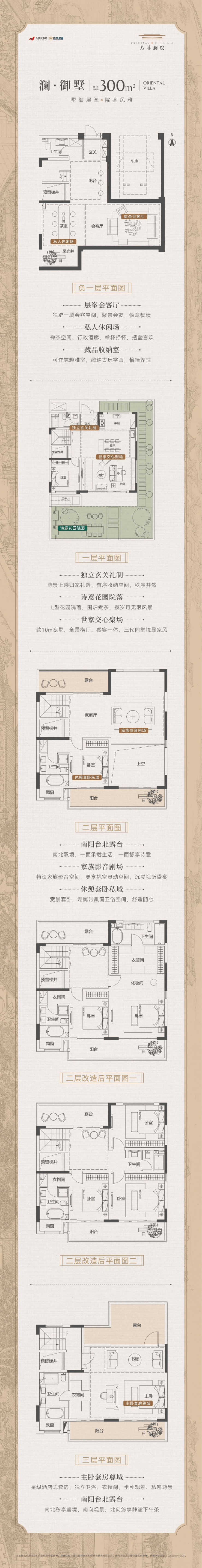 项目主打两种户型,都是市面上非常稀缺的联排产品。 一种是建面约270㎡的户型,格局方正,空间阔绰,给全家人都留足了独立和互动的空间。 另一种是建面约300㎡的户型,尺度更为奢阔,功能分区清晰,充分满足多代同堂、社交宴请与静谧私享的多重生活想象。