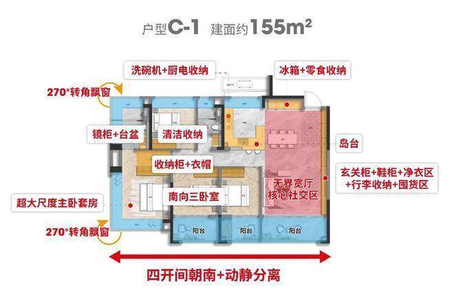 但高附赠只是“基本功”,其真正的王牌在于 “可生长户型” 。项目创新采用 “承重墙归边” 设计,解放了室内大部分墙体,让空间能伴随家庭成长而自由变化。
