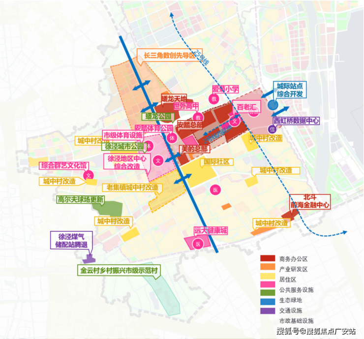 依据《虹桥商务区国土空间中近期规划》中提出将西虹桥打造为上海国际会展之都核心承载区,建设为高品质城市副中心。《虹桥国际中央商务区综合交通专项规划(2021-2035年)》指出徐泾镇域整体纳入西虹桥片区会展中心,成为四大地区级枢纽之一。(信息来源:《中近期规划》)