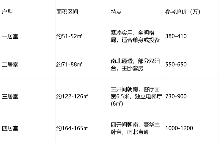 户型多样性:从51㎡小户型到165㎡大平层,满足不同客群需求