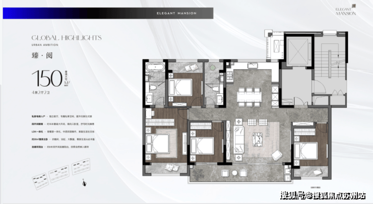 150平:超大横厅设计、8.6米景观阳台、4.8米超级大厨房,私家入户