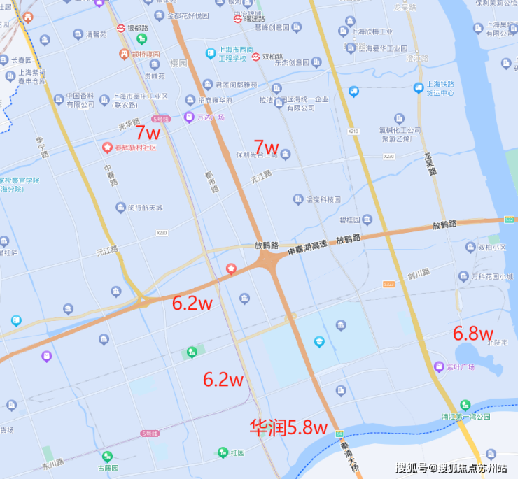 如果我们以颛桥板块来划定范围看新房价格就能发现,颛桥这里的新房早已站了7万!颛桥隔壁的紫竹,洋房6.8万,新房之间的价差都要1万/㎡了!