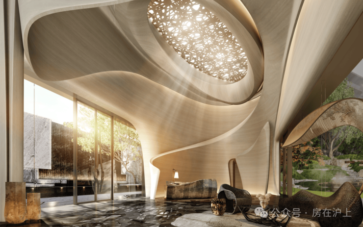 在建筑设计上,GOA大象设计跳出常规住宅的方盒子形态,以徐汇作为中国现代音乐发源地的文化基因为灵感,将“乐器王后”大提琴的优雅弧线,转译成建筑立面的二维曲线语言