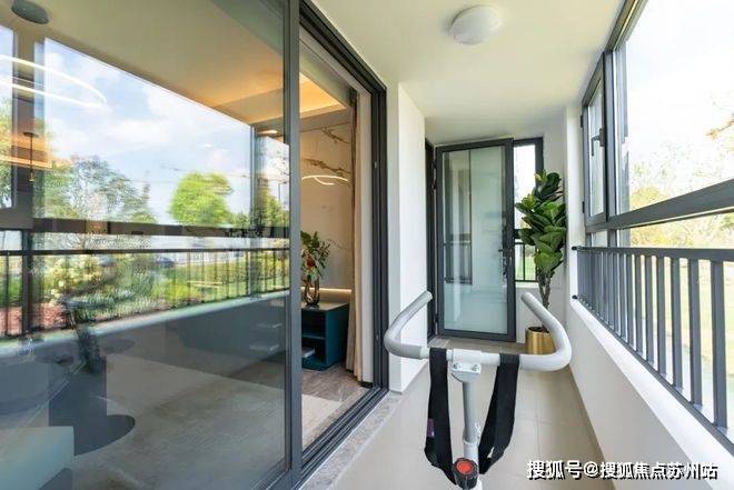 南向宽幕阳台,可以打造出多重场景,除了晾晒、洗衣之外,也可以健身、画画、品茶聊天。