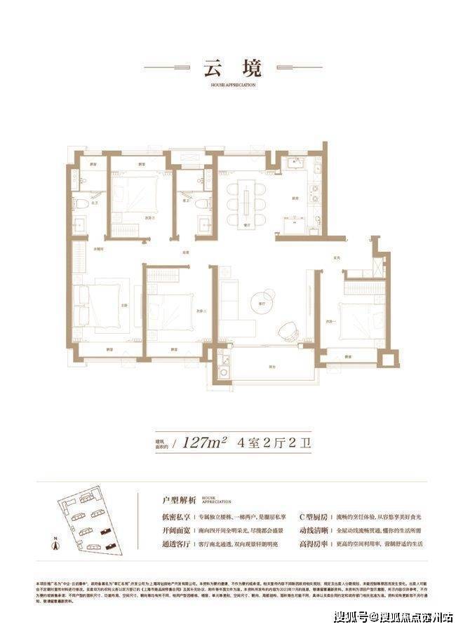 约 127㎡的 4 房 2 厅 2 卫户型,则更为宽敞大气。企云启春申售楼处电话☎:400-8673-567✅✅四个房间分布科学,既保证了各自的独立性与私密性,又便于家庭成员之间的交流互动。主卧配备独立卫生间和衣帽间,企云启春申售楼处电话☎:400-8673-567✅✅为业主带来尊贵的居住体验。客厅与餐厅相连企云启春申售楼处电话☎:400-8673-567✅✅
