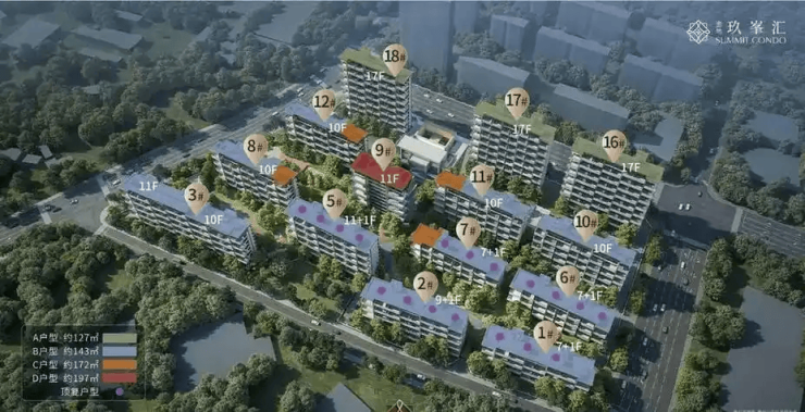 户型配置:小高层约127㎡,洋房约144㎡ /170㎡/197㎡,共604户