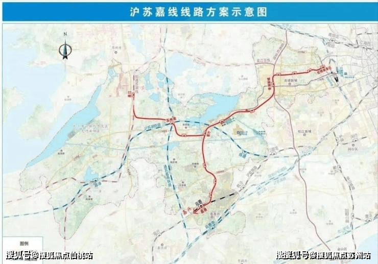 作为联系虹桥主城片区与长三角生态绿色一体化发展示范区的市域铁路,沪苏嘉城际铁路东起虹桥主城片区,西至水乡客厅,途经闵行、青浦两区,衔接江苏省在建水乡旅游线城际铁路以及浙江省在建嘉善至西塘市域铁路等线路,可与上海地铁13号线、上海地铁17号线等线路换乘。