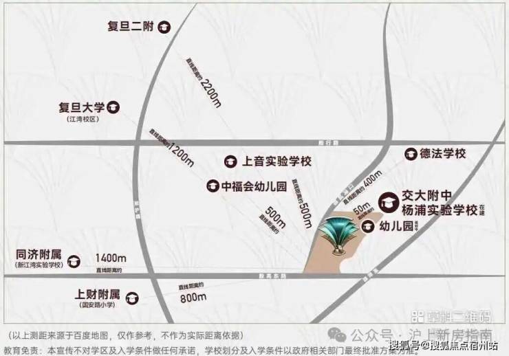 周边有中国福利会幼儿园、上海音乐学院实验学校、兰生复旦中学(国和路校区)、国和中学、市光中学、国和小学等基础教育设施,项目北侧紧邻在建的上海市交通大学附属中学杨浦实验学校(含九年一贯制及高中部).(期房不承诺学区,以后期主管部门划分为准)