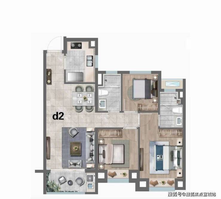D2户型:建筑面积约99㎡3房2厅2卫