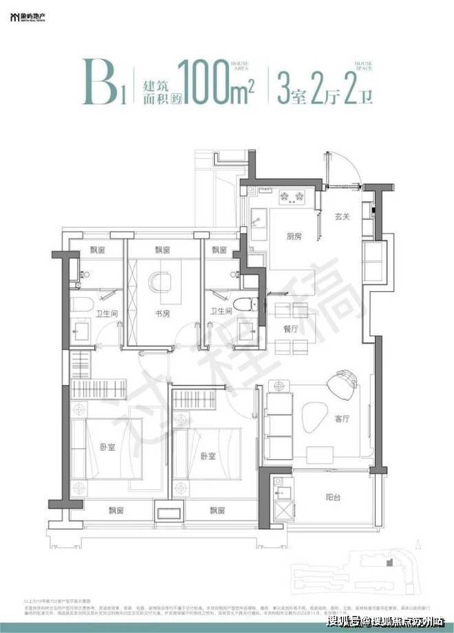 项目高层产品均为100㎡左右3房户型,一梯6户: