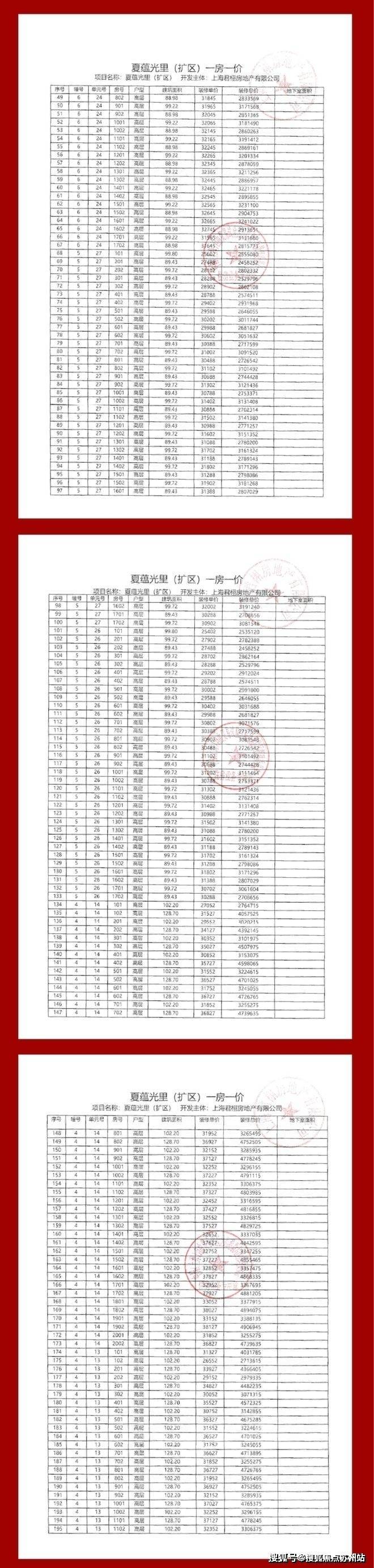 项目一房一价表