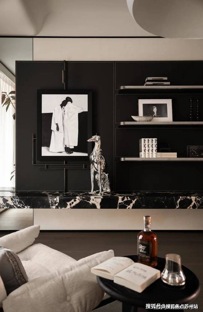 室内设计融合了香奈儿风格的温柔都市时尚感。整体色调以黑白灰为主,既有现代风尚的冷静与理性,又有都市生活的时尚与雅致。