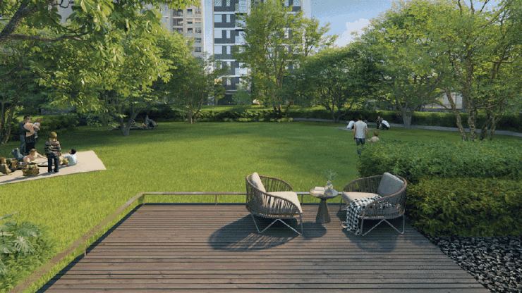 勾勒由微风绿屿、冥想花园、愈心花林组成的「林间谧庭」,抬眸望去,随风摇曳的草木,围合的树篱,平抚内心的水系,让人跳脱出日复一日的机械生活,重拾自然的疗愈。园区里还会有童玩伴盒 & 童玩场地 & 植物认知园&静心庭院&水榭林间&学习盒子&健身盒子等景观,每个年龄段人群,都能够在丰富的景观中找到自己理想的生活状态。