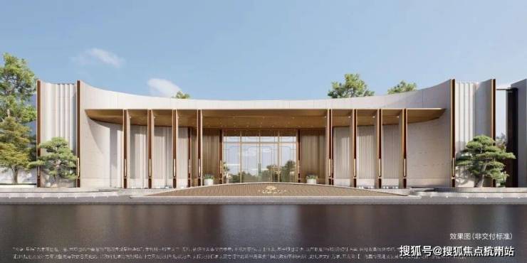 在选材上,项目采用米色石材、铝板和金属镶框进行多元混搭,重点刻画单元入口、入户大堂等细节,质感非常丰富。尤其艺术感的弧形镜面立面,与门前蜿蜒的水岸风光相呼应,让建筑仿佛拥有了呼吸感和浪漫的情绪。