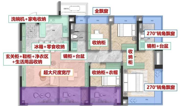 一梯一户/两梯两户+多阳台+多飘窗这样的设计,更是让业主额外拥有了好几个平方的面积作为家的延伸空间,实得面积再次“膨胀”!