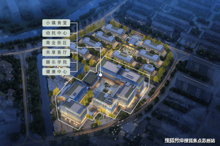 小镇中心内有 共享客厅、多功能剧场、颐乐学院、幼托中心、健康管理中心、小镇食堂、精品超市、特色餐饮、宠物门店、洗衣店等业态。
