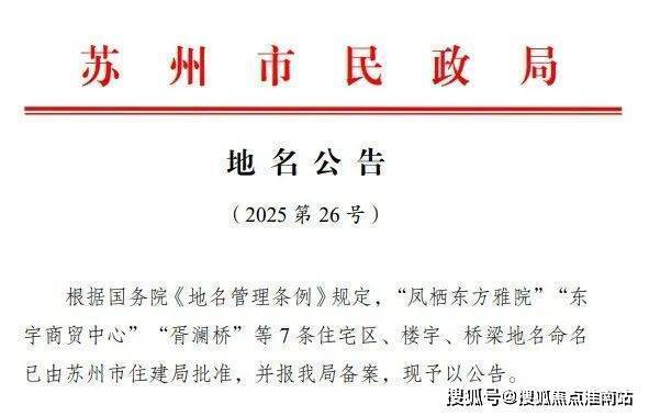 近日,苏州市民政局公告苏地2024-WG-Z14号地块案名:望湖江南院.
