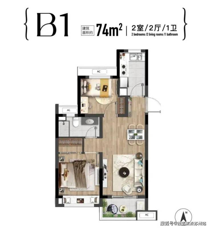 这个 恒都云湾售楼处电话:400-8123-664✔✔建面约74㎡户型非常通透,基本上南北能开窗的部分都开了窗,所以采光和通风都很棒;