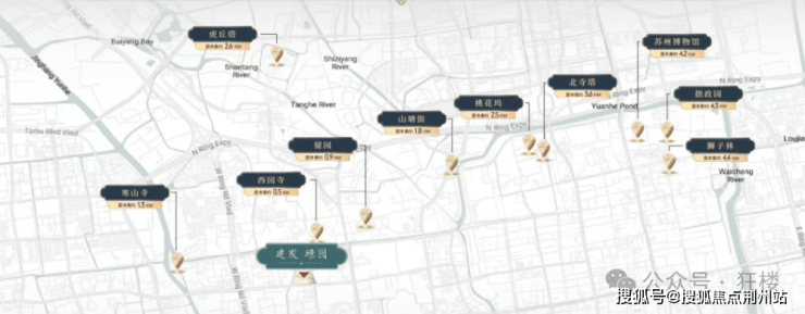 这里近距离靠近北寺塔、寒山寺、山塘街、留园等名胜古迹,文化氛围浓郁。交通上,这里有西环快速路、干将西路等城市主干道,还有着轨交1号线、2号线等地铁,出行非常便捷。