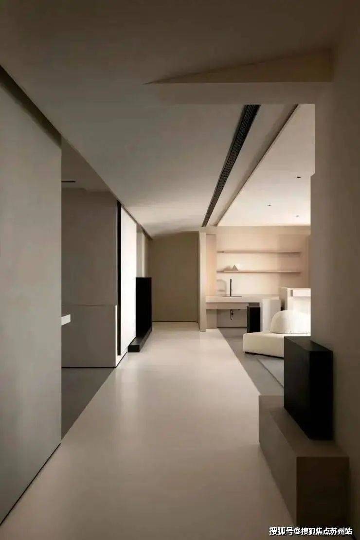 遵循现代极简的设计语言:「自由平面」与「流动空间」,简约的立面与精妙的材质,如岩板、原木色柜体与微水泥,形体的简洁与纯粹从这纵横交错的垂直水平立面被构建出来。每一空间都有自己的生命系统,容纳着我们的呼吸、感知,生活的展开与收敛。