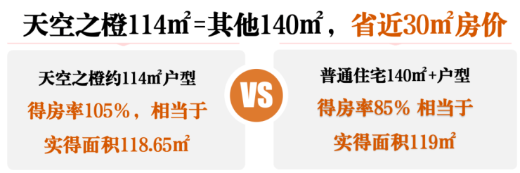 天空之橙是“反其道而行之”,打造了「板块内唯一的小户型选择」。从建面约108㎡起步,到114㎡/117㎡,最大约132㎡,精准地切入了年轻人的购房能力圈,填补市场空白。