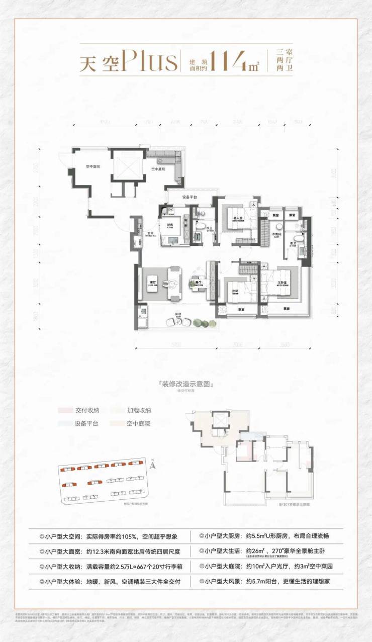 明星户型约114㎡,打破了小户型=局促的固有认知,将「质价比」诠释到了顶点。